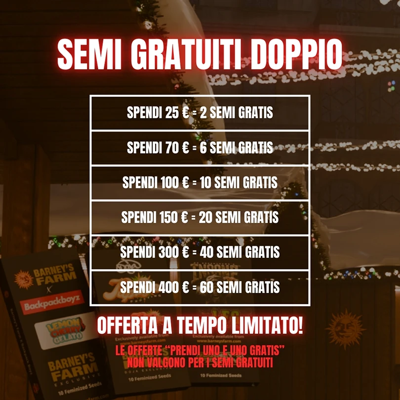 Il nostro shop online è conforme alla normativa olandese. I semi sono venduti escusivamente come souvenir o stoccaggio e conservazione genetica.
